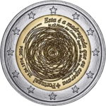 Das Thema der ersten Münze lautet „50. Jahrestag der Revolution vom 25.04.1974“. Auf der Bildseite ist mittig eine Nelke als symbolische Darstellung der Revolution, umgeben von mehreren exzentrischen Kreisen, dargestellt. Am rechten Bildrand verlaufend ist der Vers „Esta é a madrugada que eu esperava“ (dt. Das ist die Morgendämmerung, auf die ich gewartet habe) aus dem Gedicht „O Nome das Coisas“ der Dichterin „Sophia de Mello Breyner Andresen“ zu sehen. Am unteren Bildrand das Staatswappen und der Ausgabestaat „Portugal“ sowie die Daten „25.04.1974_2024. Oberhalb links ist der Münzgestalter „HENRIQUE CAYATTE“ und die Münzstätte „CASA DA MOEDA“ zu erkennen. Auf dem äußeren Münzring sind die zwölf Sterne der Europaflagge dargestellt. Die von Henrique Cayatte gestaltete Münze erscheint in einer Gesamtauflage von 520.000 Ex., davon jeweils 7.500 Ex. in BU-Coincard sowie im Spiegelglanz-Folder.